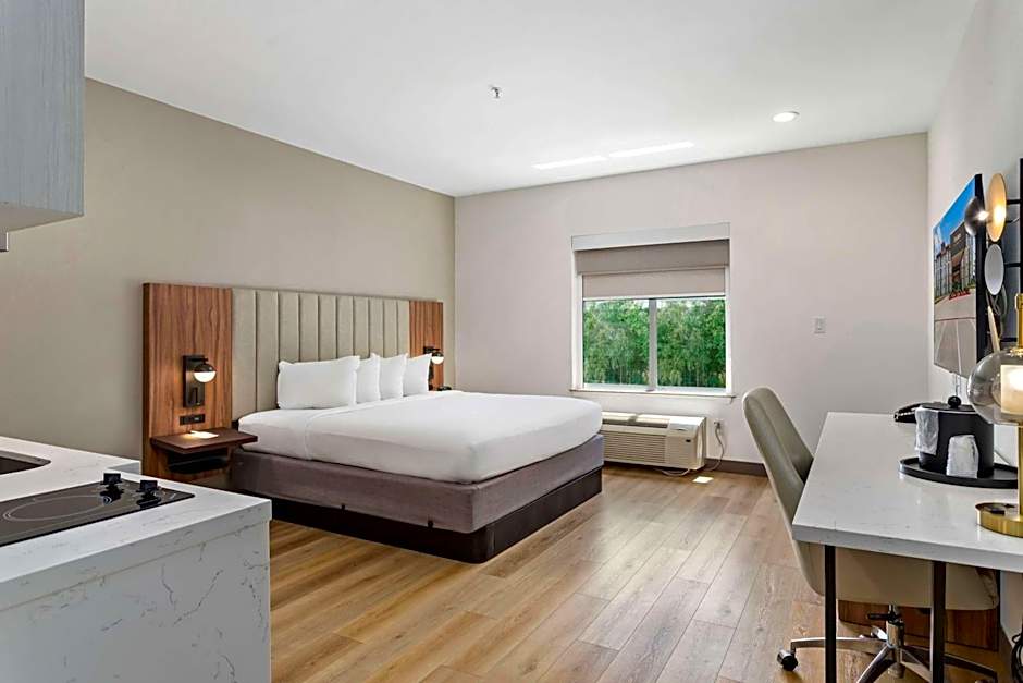 Room options cover a range of needs, from Studio and Suite layouts to king- and queen-bed configurations. Examples include a Suite with a King bed and a sofa bed, a Suite with a Queen bed, and a Studio Suite with two Queen beds. Some suites offer generous space, accommodating up to 8 adults and 5 children, making it a sensible pick for family trips.